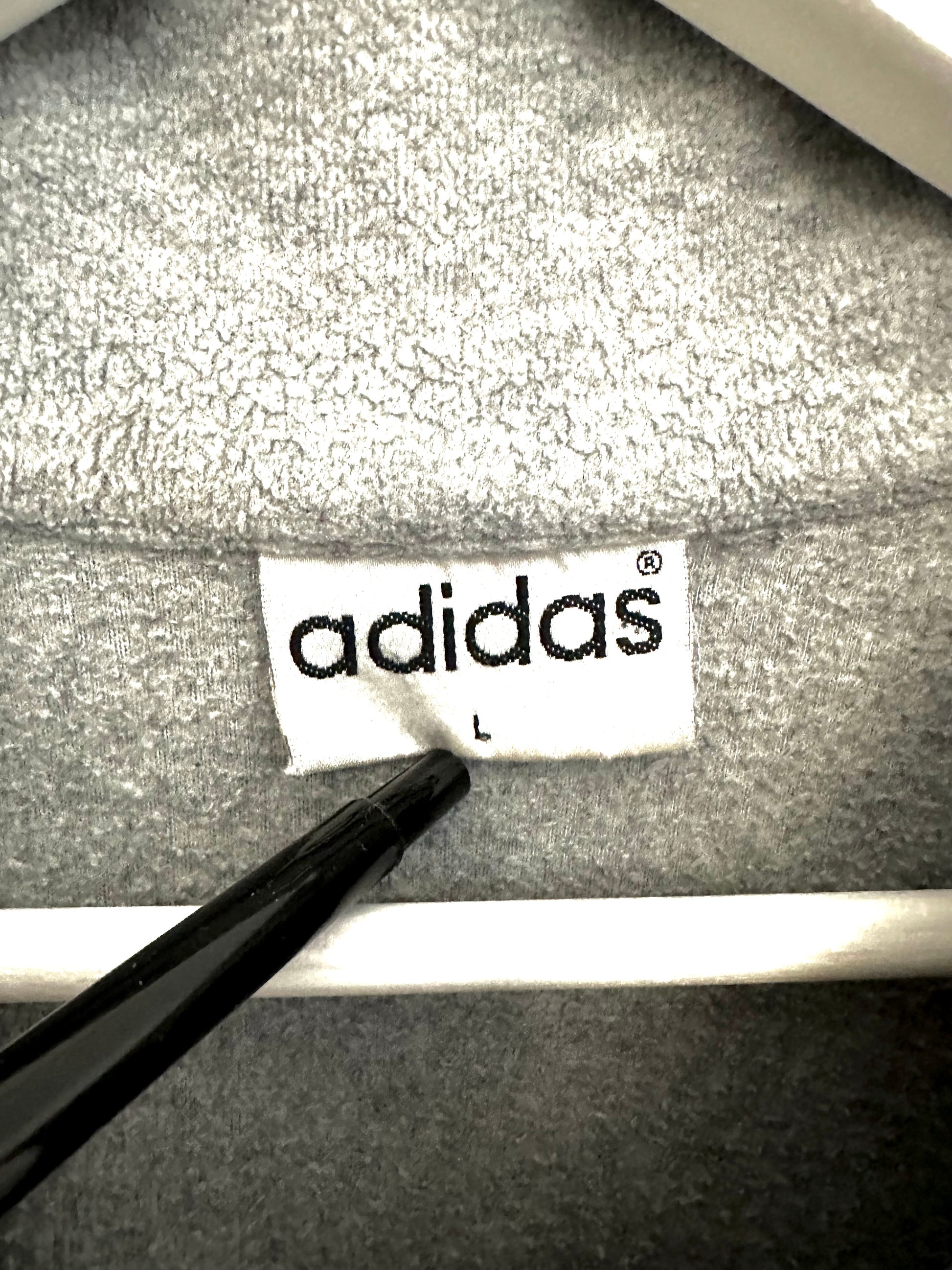 Adidas quarter-zip fleece from the early 2000s in classic grey. Structured fleece construction typical of the period. The relaxed fit and quarter-zip design make it versatile for layering or standalone wear. Vintage condition with authentic Adidas branding.